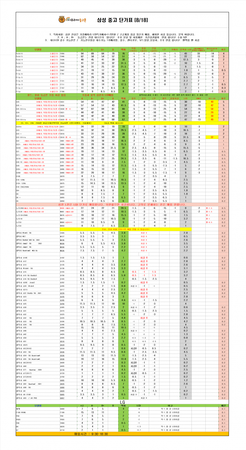 매장소식 2025년 8월 18일 중고폰 매입 단가표 작성일25.08.18 11:45 | 조회수 1,192 2025년 8월 18일 중고폰 매입 단가표 이전글폰사자쇼핑몰 교환&환불 정책 안내 다음글2025년 8월 11일 중고폰 매입 단가표 목록