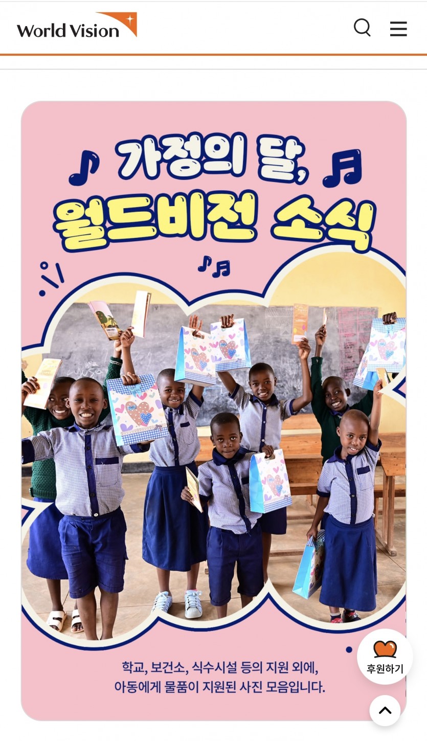 폰사자소식 5월 월드비전 소식 작성일24.05.23 19:03 | 조회수 1,782 폰사자에서는 매월 수익의 일부를 월드비전을 통해 한국의 저소득층가정과 아프리카아이들에게 도움을 주고 있습니다. 폰사자를 사랑해 주시는 마음 만큼 나눔을 베풀도록 하겠습니다. 이전글6월 카드사 무이자 혜택 안내 다음글공식협찬] MBC일일드라마 '용감무쌍 용수정' 협찬 목록